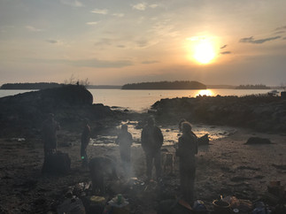 A boat ride to an island, the best local ingredients--and some cheeses from afar--a cook fire, and a sunset. You got to wonder what everyone else is doing on a day like that.