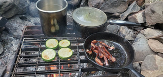 Downeast Maine is a local food epicenter, and there's no better way to cook than over an open flame on an island. I'm still not sure how the food situation will evolve on the Sail Polaris charters, but I'd like to add an alternative--or an addition--to the traditional island lobster bake for those folks (like me) who experience the world via what goes into their mouths. Fresh caught mackerel and clams, mushrooms and zucchini and tomatoes, homemade sourdough rye called Vollkornbrot... not bad.